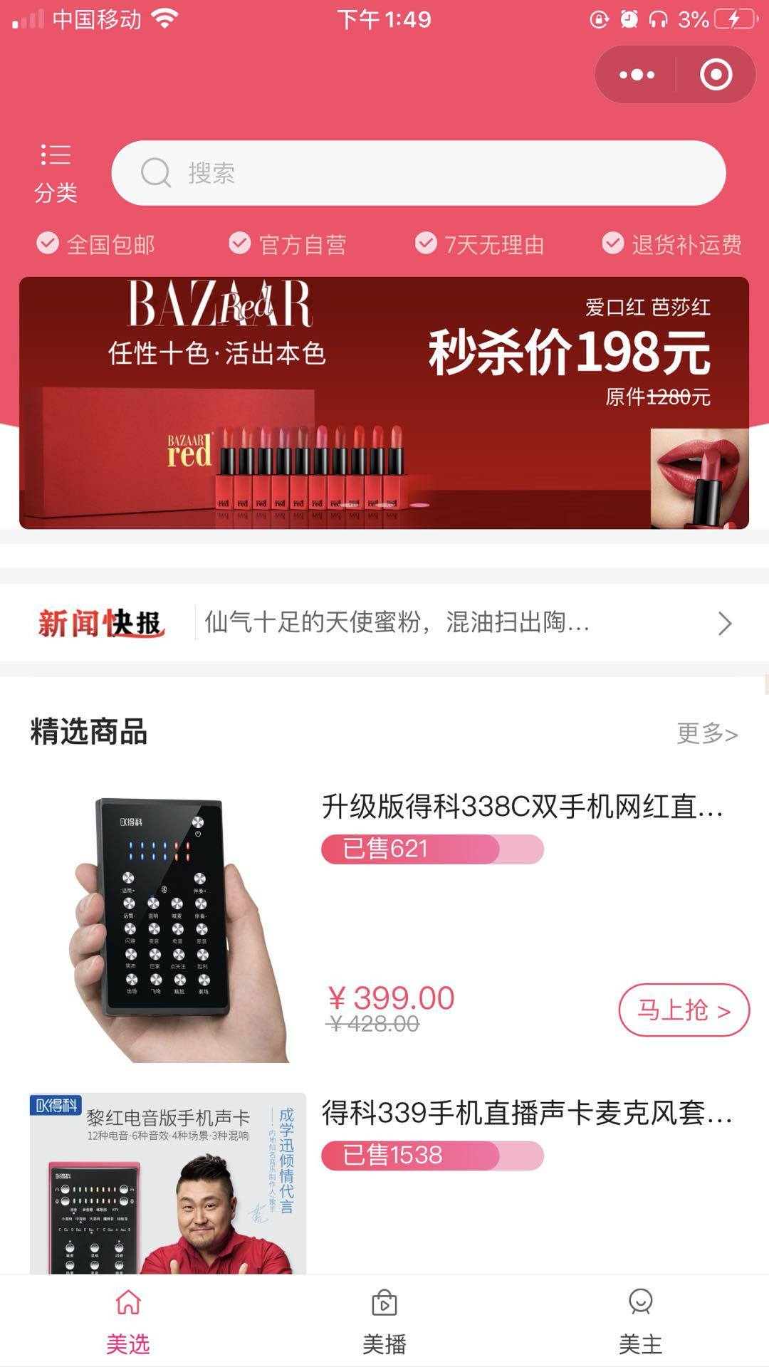 該直播小程序主要是提供精選美業(yè)好貨推薦,通過主播的形式把更多美業(yè)相關(guān)的優(yōu)勢產(chǎn)品以更直觀的方式展現(xiàn)給客戶,具體功能如下: