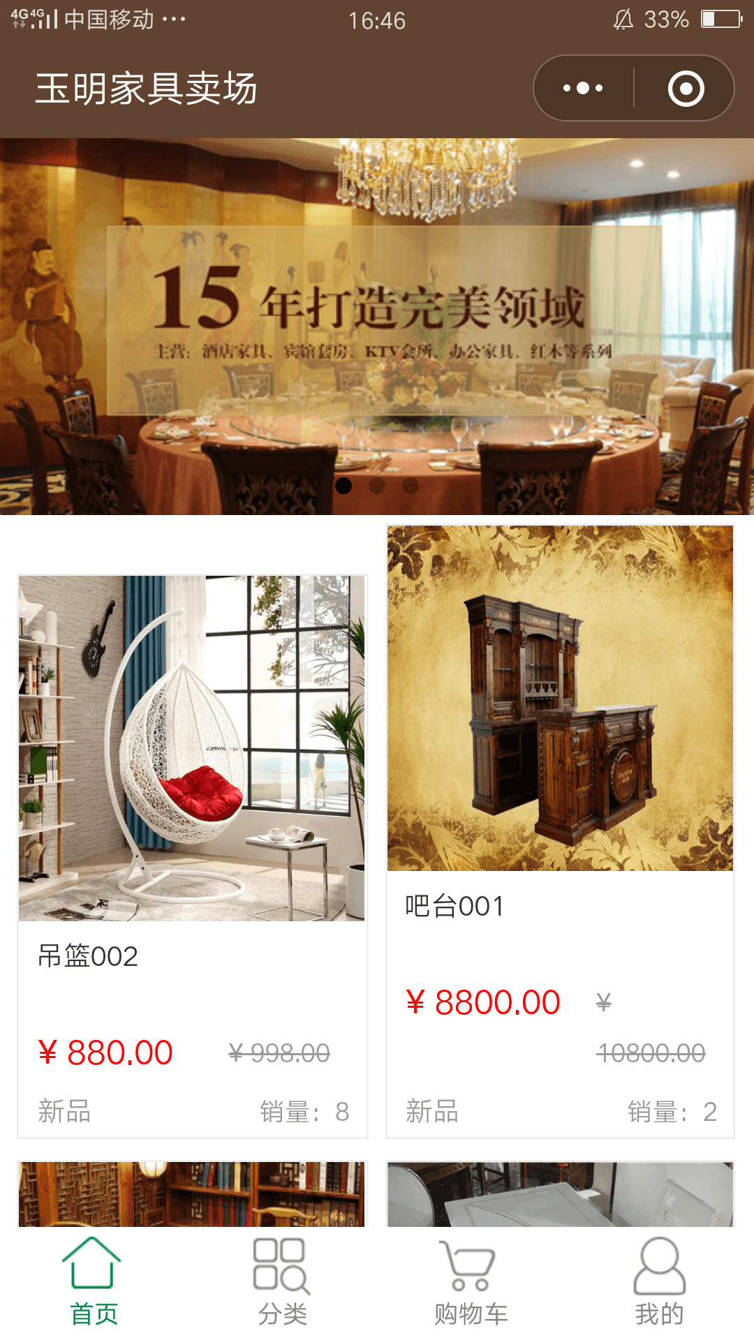 (2)分類管理:按家具類型、用途的不同分類管理商品,整合同類型商品統(tǒng)一展示。