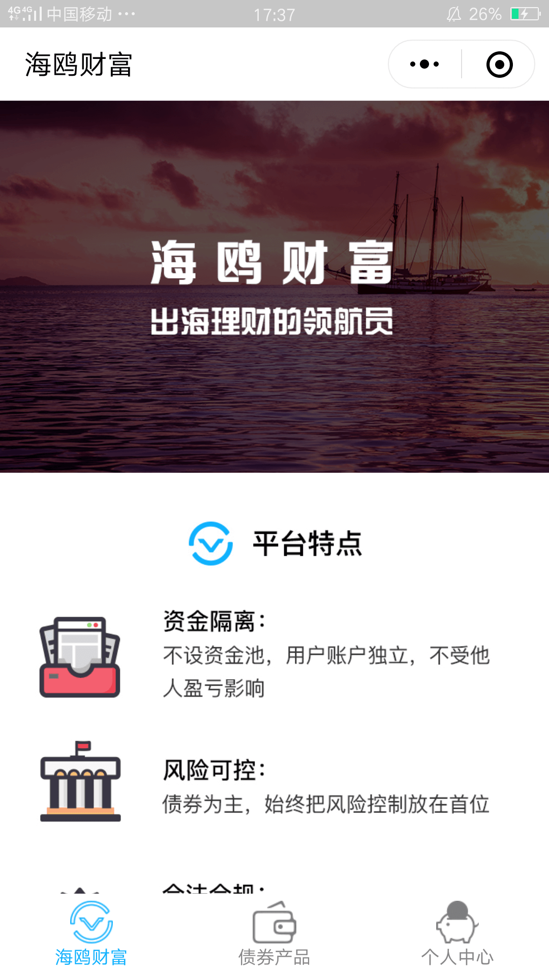 (1)產品展示:展示海鷗財富所能提供的、供用戶申購的所有債券產品。