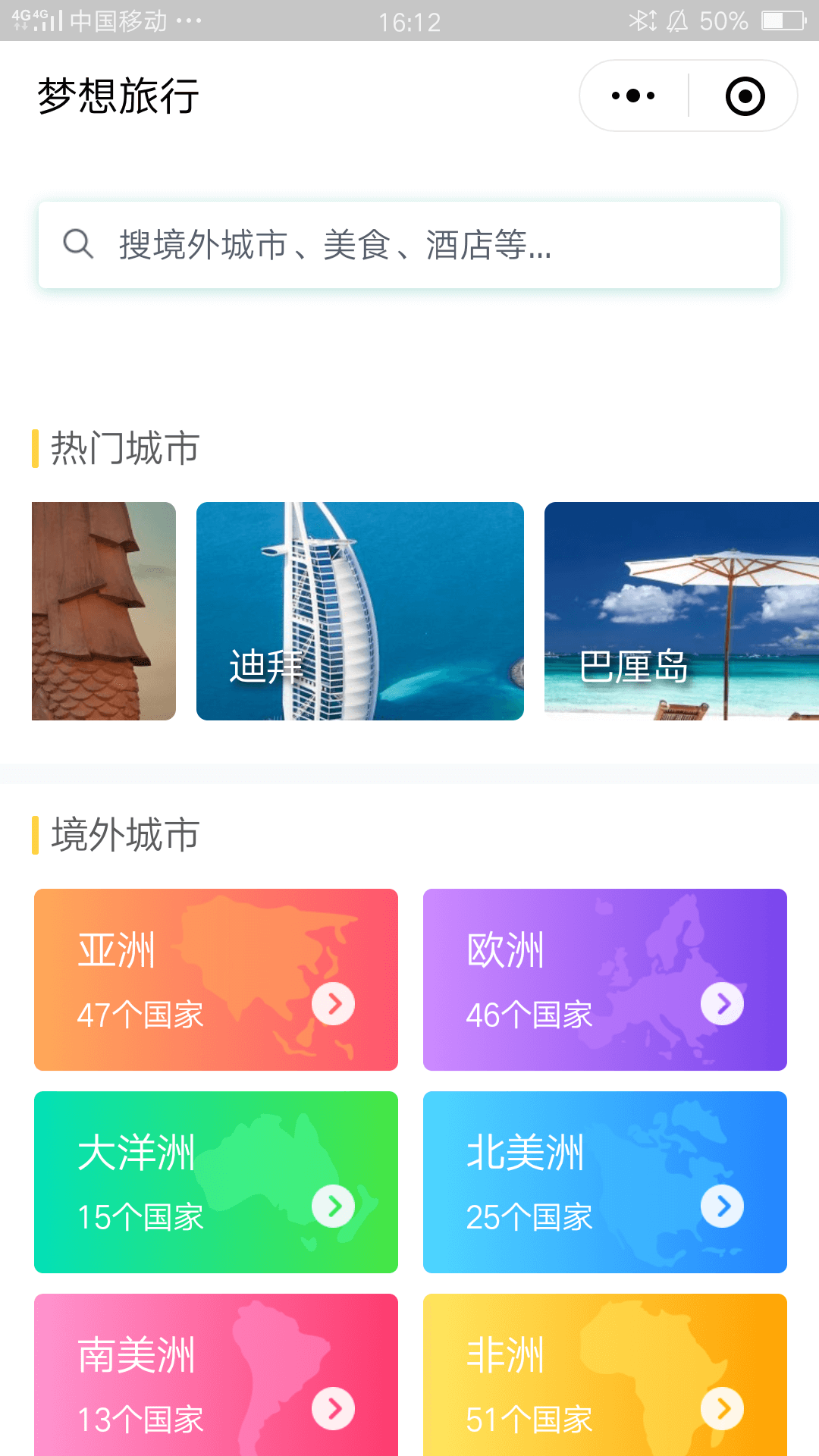 夢(mèng)想旅行小程序是一個(gè)為用戶提供境外城市旅游資訊的資訊小程序,并且在提供資訊的同時(shí),開(kāi)發(fā)可供用戶互動(dòng)交流、發(fā)表意見(jiàn)的功能,通過(guò)已在該城市旅游過(guò)的用戶發(fā)表的內(nèi)容,讓這個(gè)平臺(tái)展現(xiàn)的信息更具真實(shí)性。